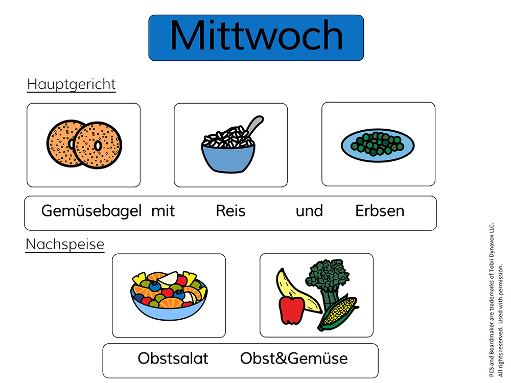 Essenspläne Montag Dienstag Mittwoch Montag – 08.12.2025 Dienstag – 09.12.2025 Mittwoch – 10.12.2025 PCS and Boardmaker are trademarks of Tobii Dynavox LLC. All rights reserved. Used with permission. Hier geht es zur Homepage der Wolfsburger Schulverpflegungs GmbH.